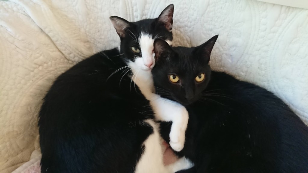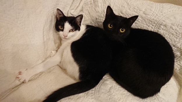 母娘の2匹の猫と暮らしています。母がさくら(黒白)、娘がかえで(黒)です。
